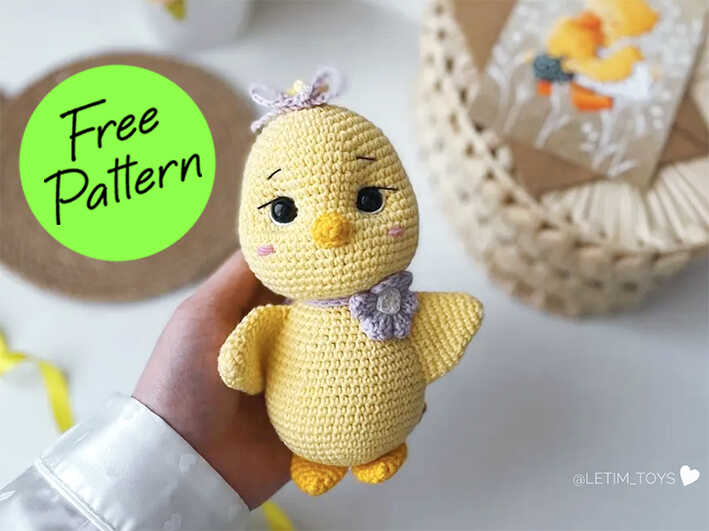 One of the free amigurumi crochet patterns we will share today is the spring chick, whose photos and design belong to Lesya Konovalova. You can learn how to crochet these chick using the free amigurumi pattern. Thanks to dear Lesya Konovalova for this cute chick. The finished size of the amigurumi spring chick is about 17 cm (6.7″) tall.