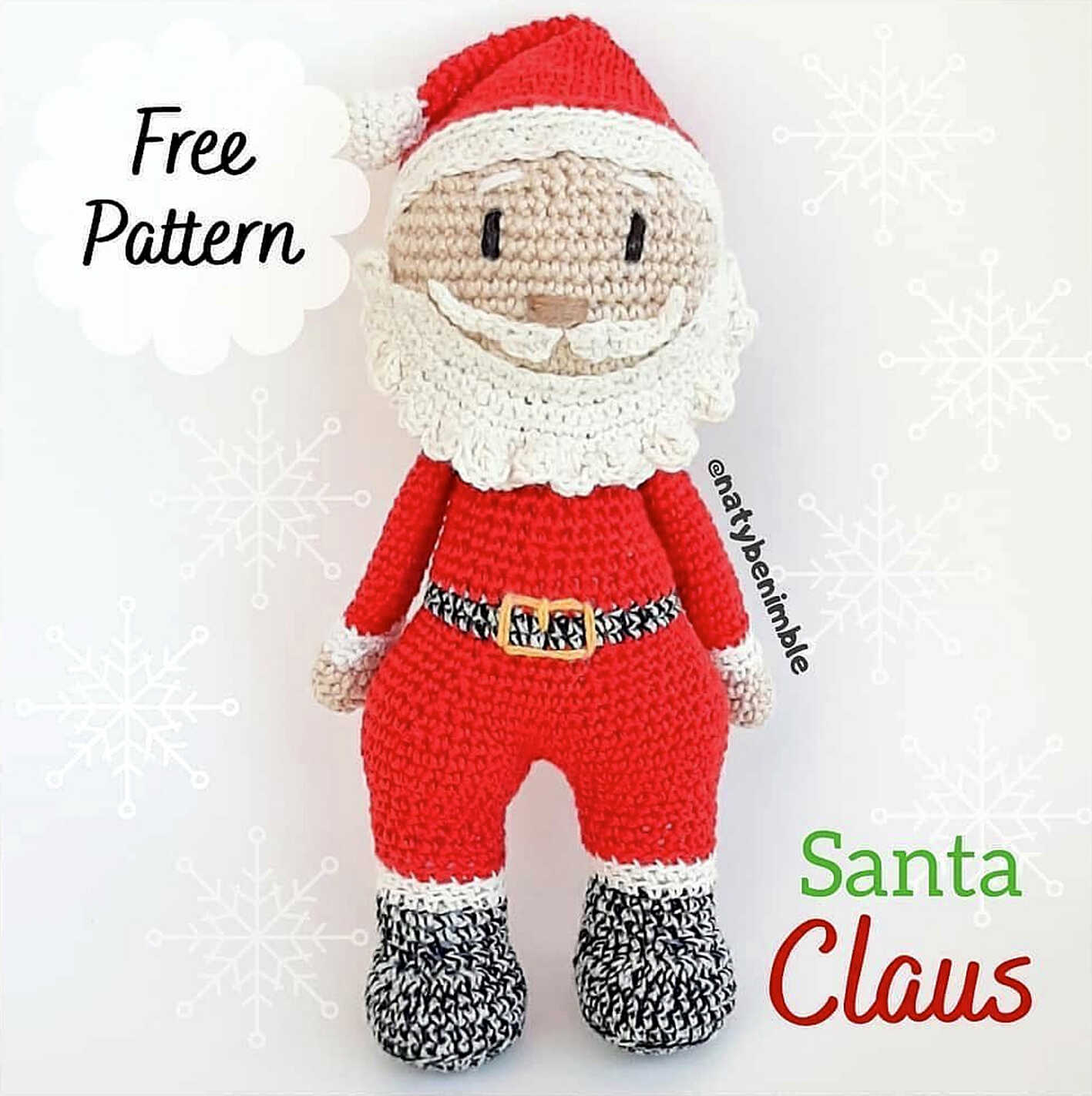 One of the free amigurumi crochet patterns we will share today is the amigurumi Santa Claus, whose design belong to Naty be nimble. You can learn how to crochet these Santa using the free amigurumi pattern. Thanks to Naty be nimble (@natybenimble) for this Santa Claus.